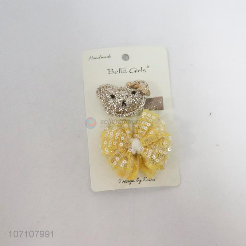 New design 2pcs/set cartoon bear and bowknot hairpins for girls