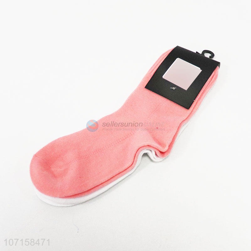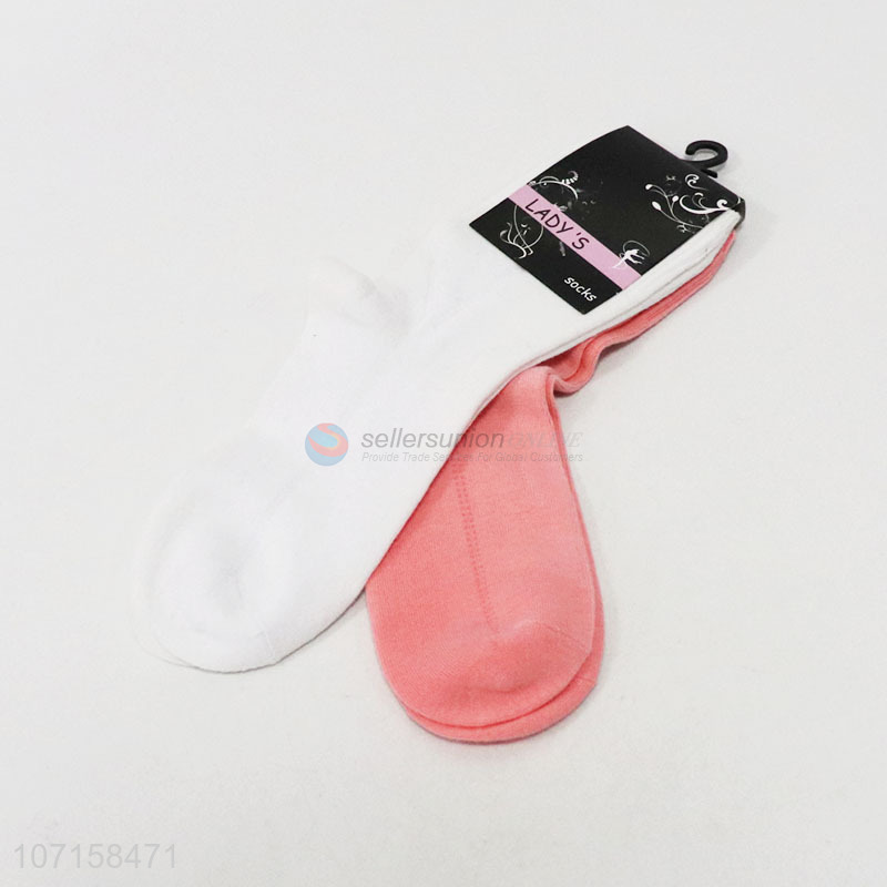 Low price 2 pairs solid color women cotton knitting socks crew socks