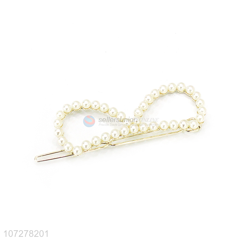 Fashion Pearls Hair Pin Ladies Frog Buckle Snap Clip
