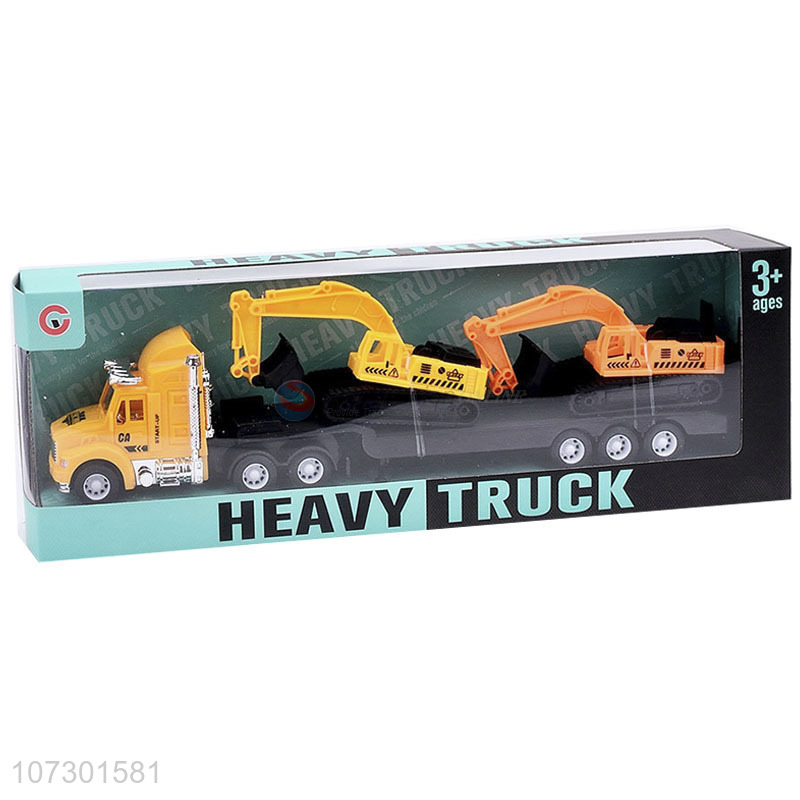 Best Price Inertial Heavy Trailer Truck Toy Carrying Two Excavator For Kids
