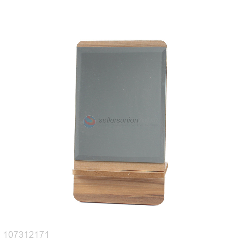 High quality rectangle shape plastic cosmetic mirror wood grain mirror