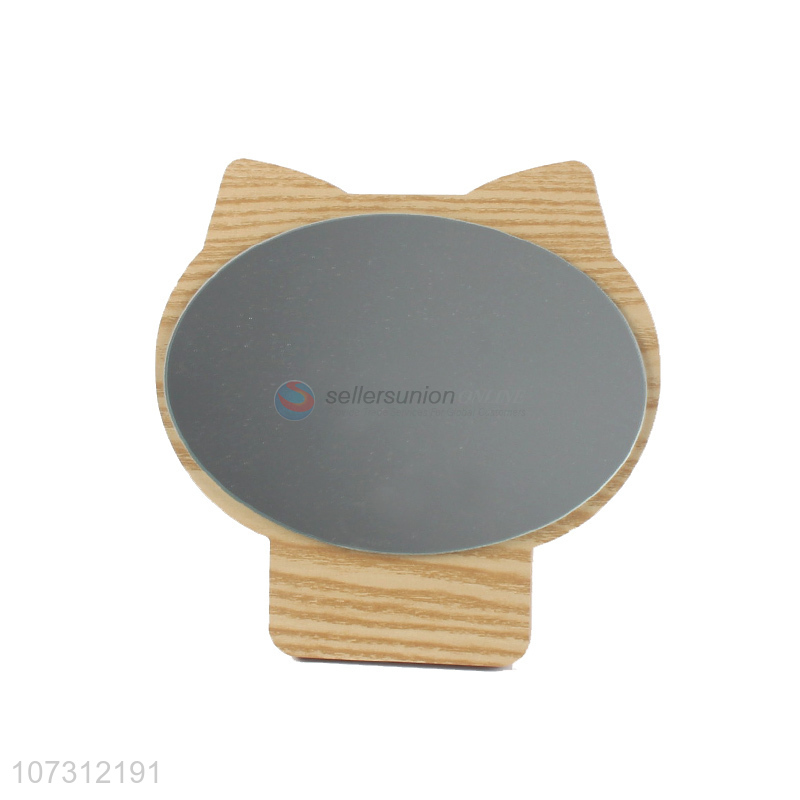 Lovely design cat shape plastic makeup mirror wood grain mirror