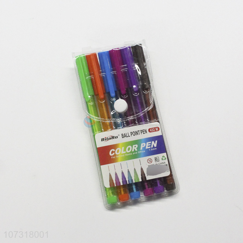 Factory price 8 colors 1.0mm plastic ball pens for school and office
