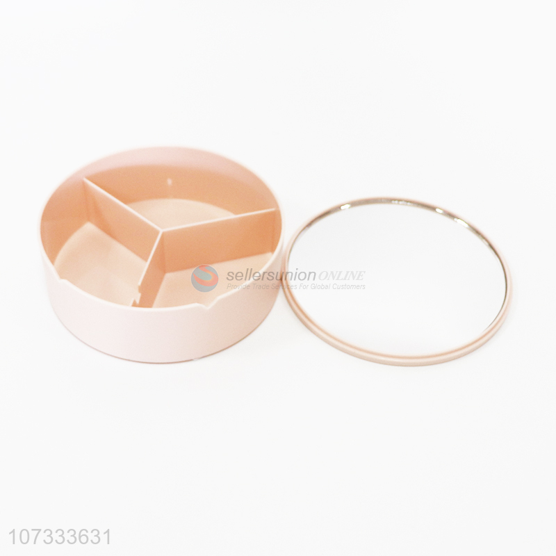 Good sale portable round plastic makeup storage box with mirror