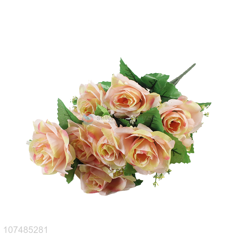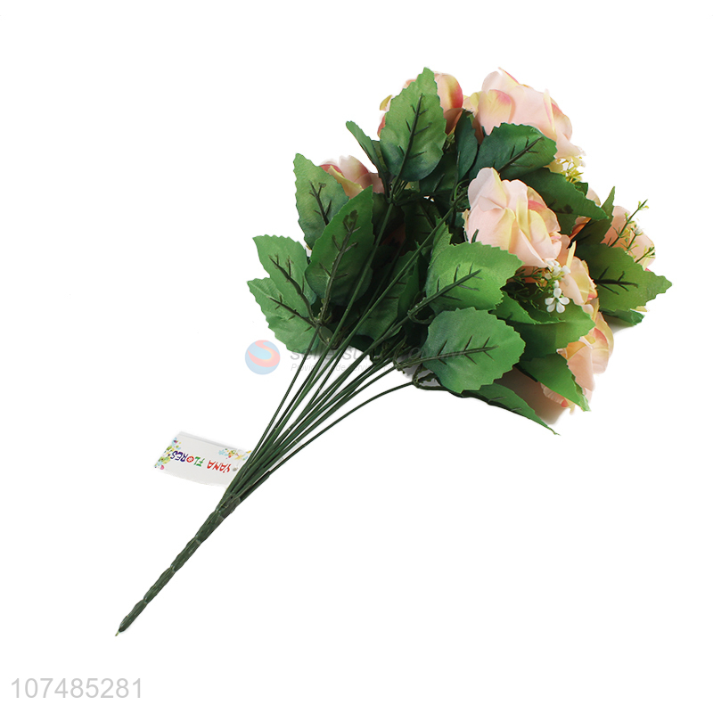 Low price decorative 12 heads simulation rose plastic bouquet