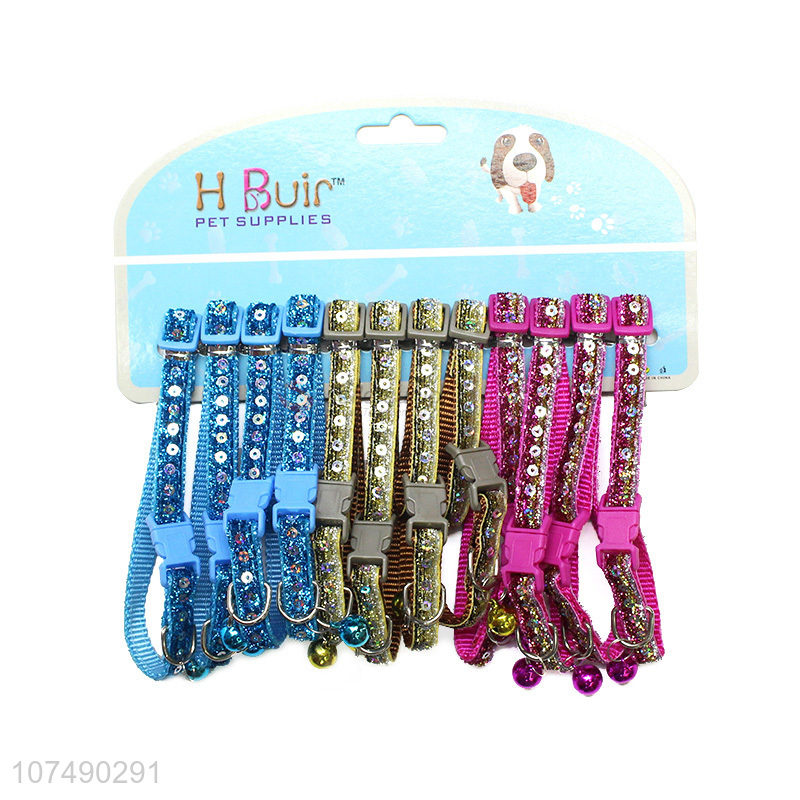China manufacturer pet products fashion woven dog collar with sequins