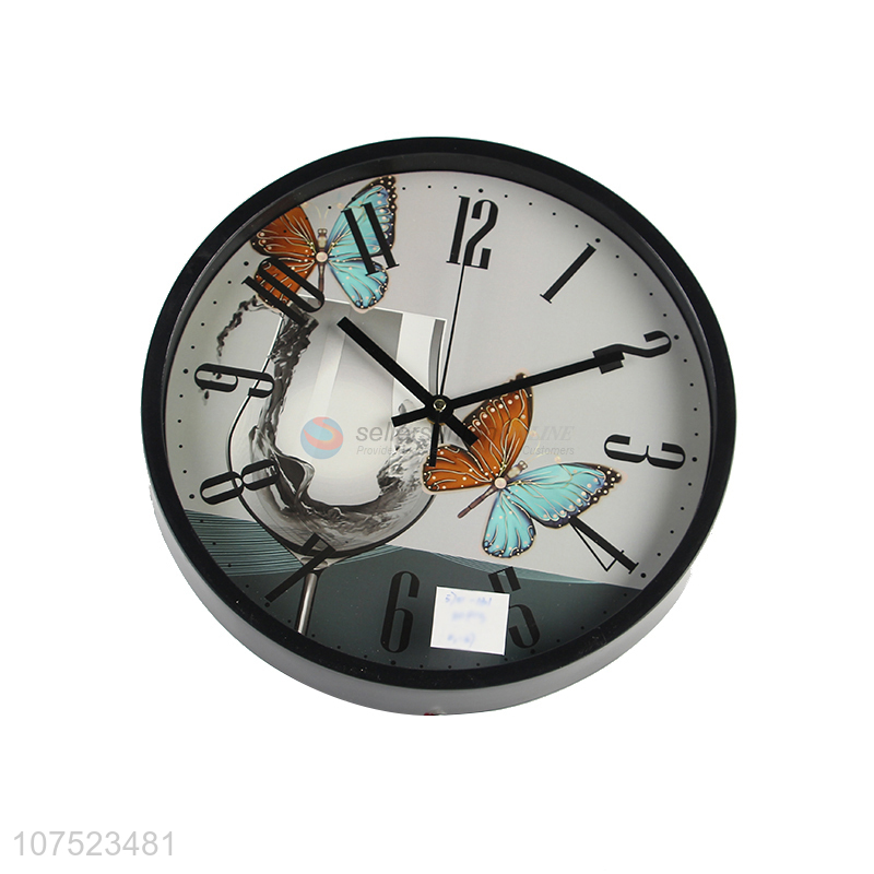 Hot sale butterfly & cup printed wall clock classroom living room plastic quartz clock