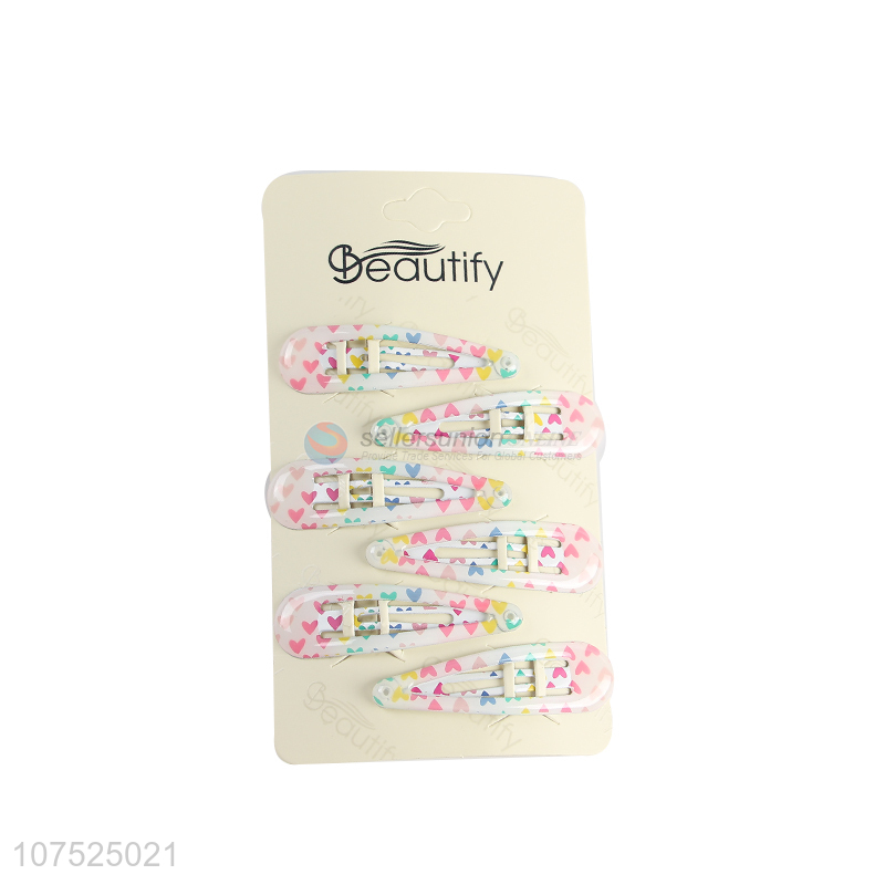 Fashion design heart printed iron hairpins hair clips for children