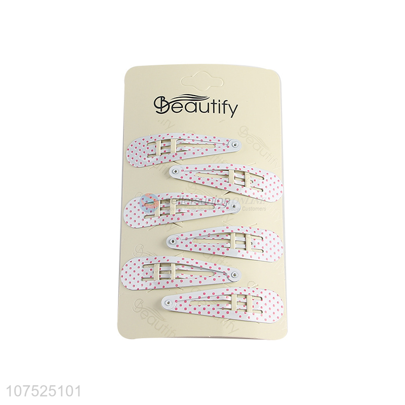 Wholesale polka dot printed iron hair clips metal hairpin set