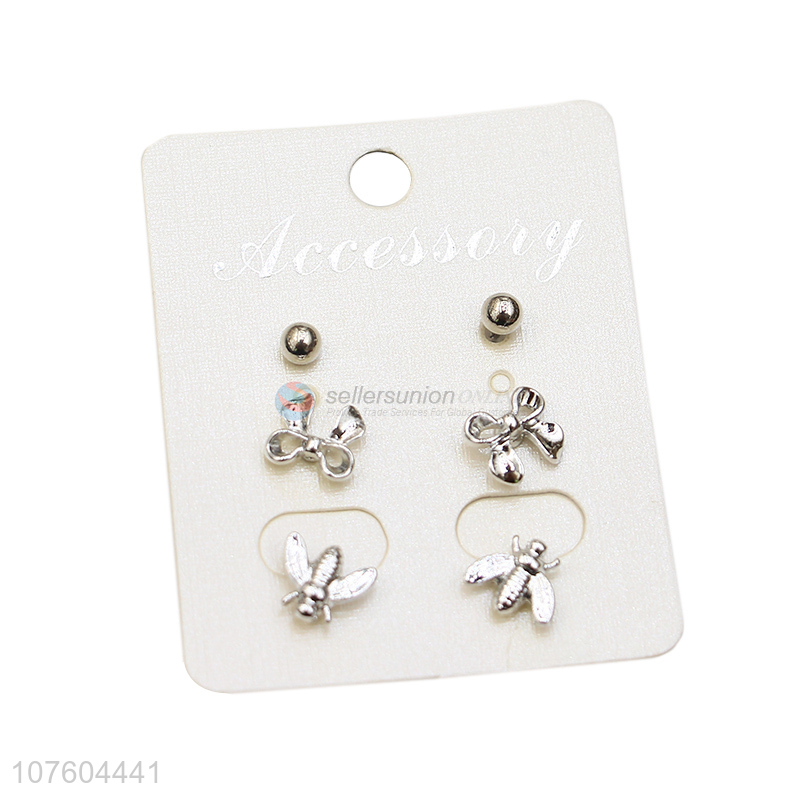 Fashion bowknot ear stud set bee stud earring set for girls