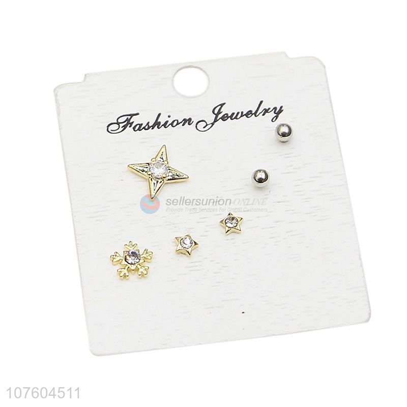Promotional stylish snowflake alloy ear stud set with clear rhinestone