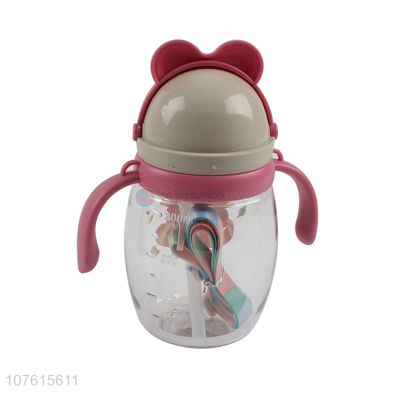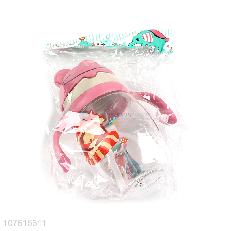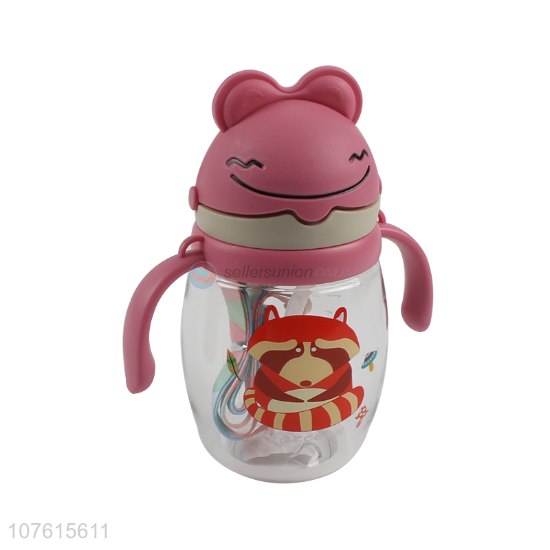 Hot selling cartoon children plastic water bottle with handles & straw