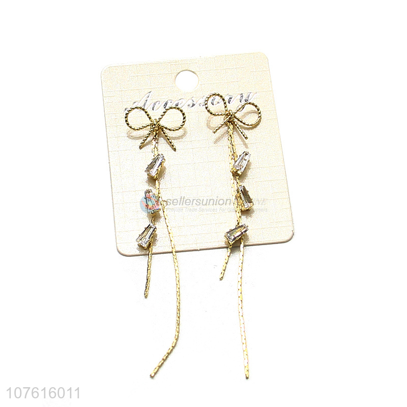 Elegant Bowknot Design Long Tassel Exaggerated Earring