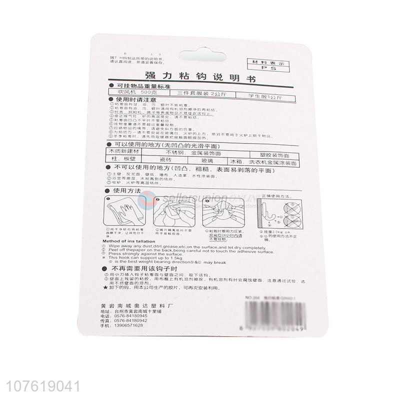 Wholesale colorful eco friendly self adsorption plastic hook for kitchen