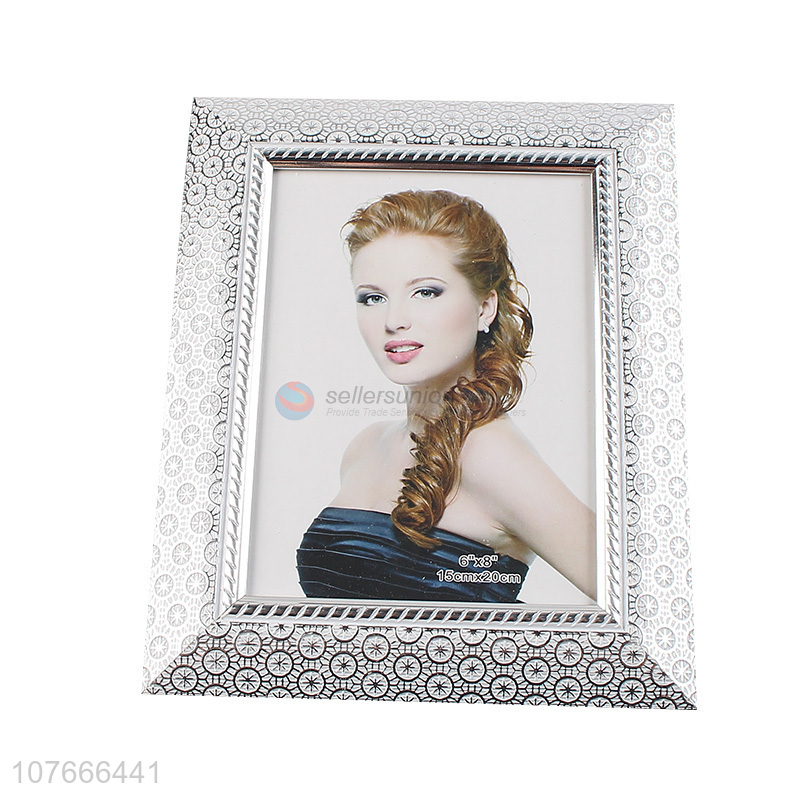 New fashion design plastic photo frame silver white metal texture photo frame