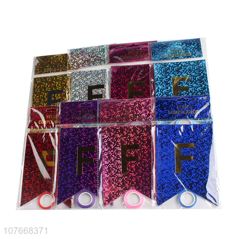 Hot sale hot stamping sequins Spanish happy birthday banner decoration