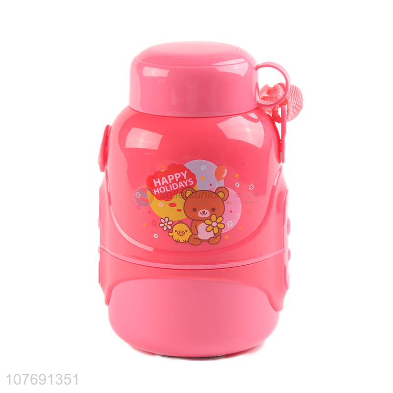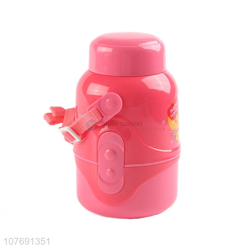 Top seller cartoon design kids plastic water bottle with strap