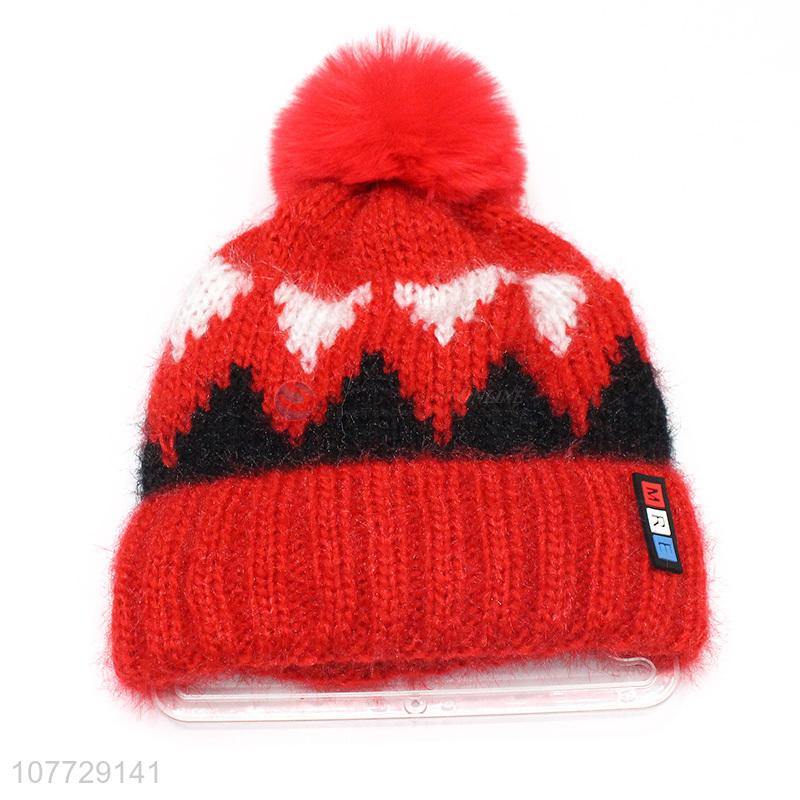 Good quality autumn winter women hat knitted hat pompom hat with fleece lining