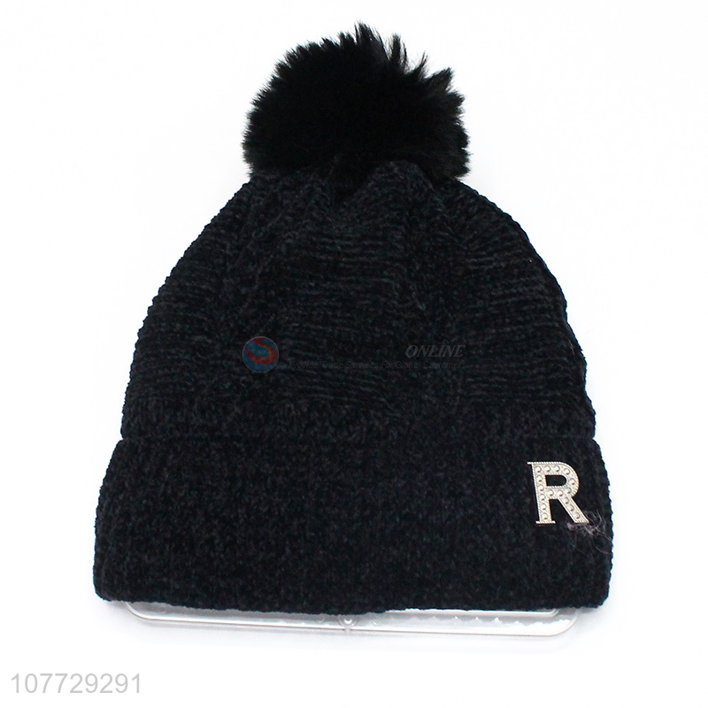 Recent product women winter knitting hat fleece lined beanie cap with pompom