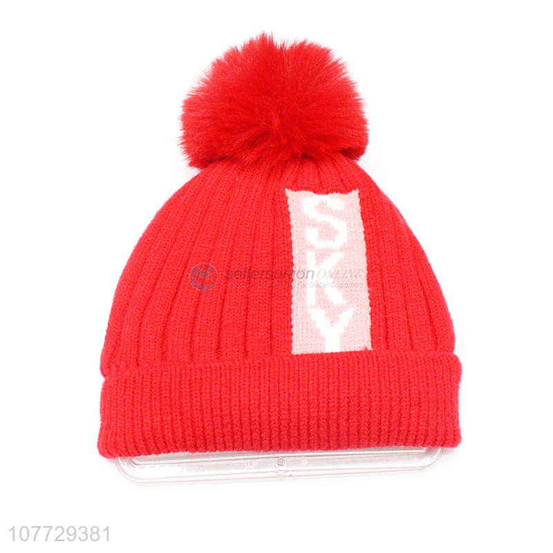Hot products kids winter beanie knitted hat with pompom