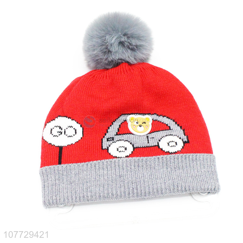 Most popular toddler boys girls outdoor jacquard pompom beanie