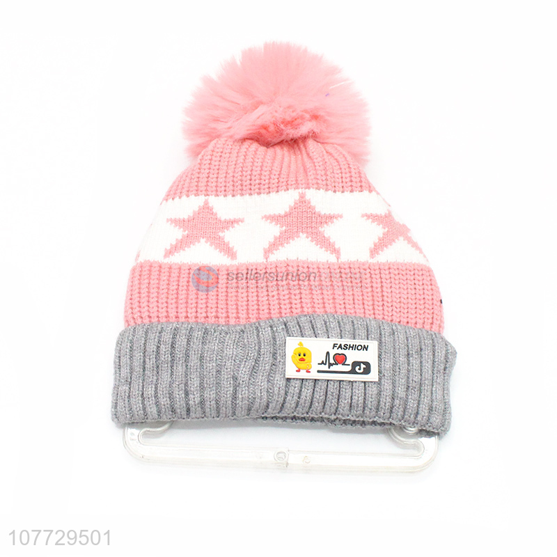 New products kids winter hat boys girls jacquard beanie with pompom