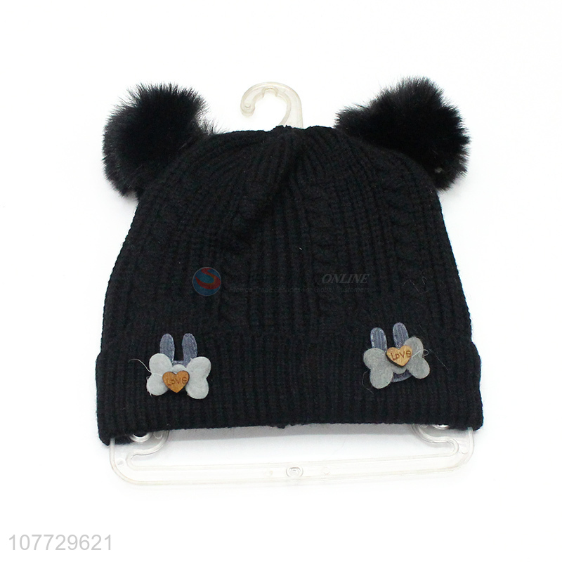 Hot selling children winter pompom beanie toddler knitting cap