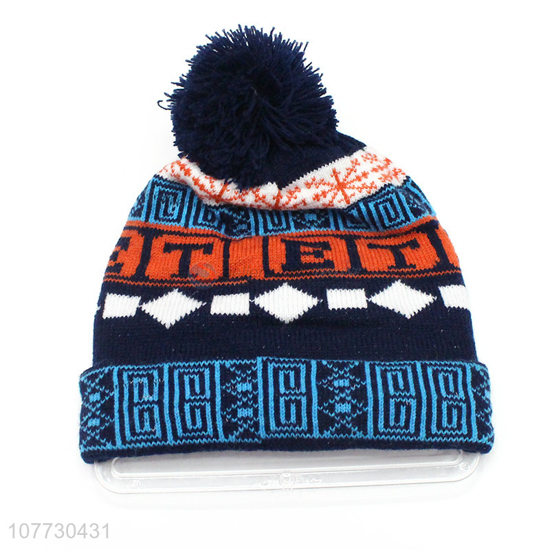 Best selling children knitted hat winter pompom jacquard beanies