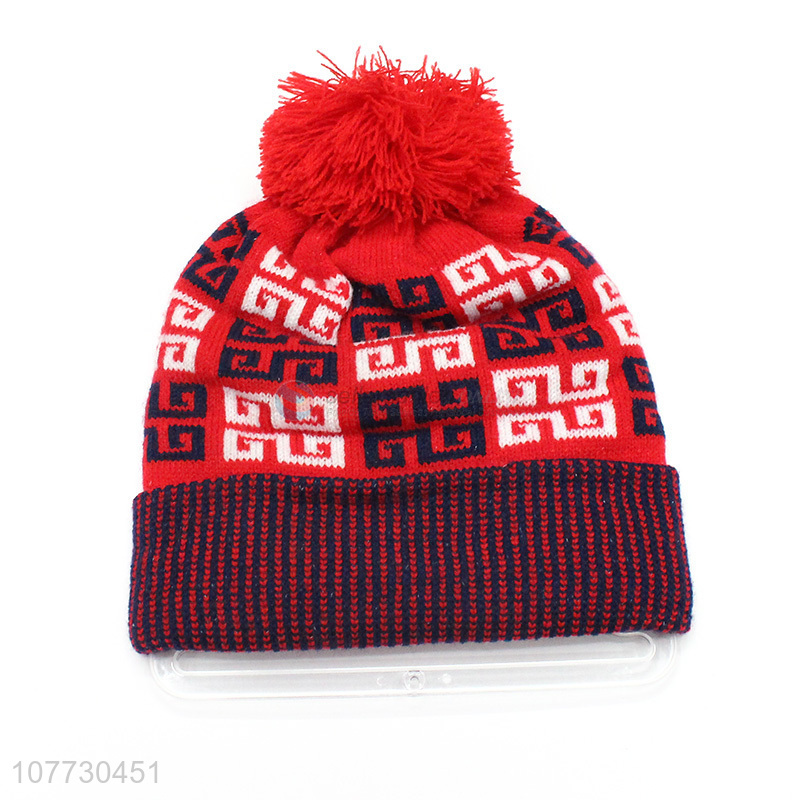 Competitive price kids winter jacquard hat boys girls pompom beanies