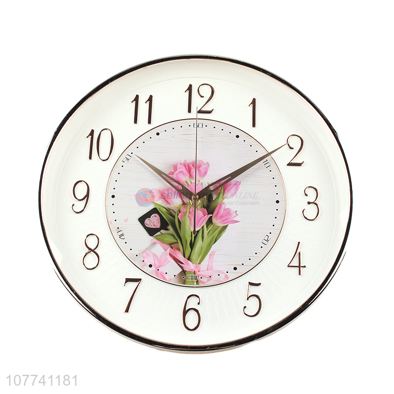 Wholesale Flower Pattern Round Wall Clock Modern Hanging Clock