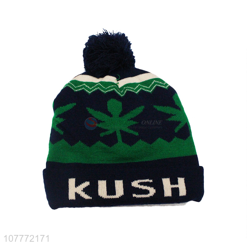 Creative green outdoor leisure knitted hat warm woolen hat