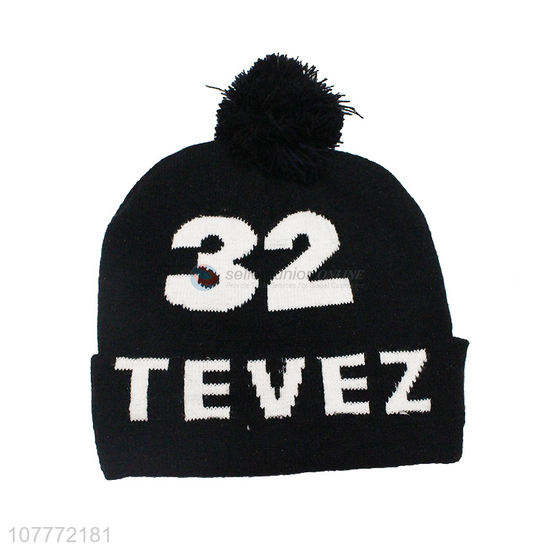 Simple black casual sports knitted hat wool ball warm hat