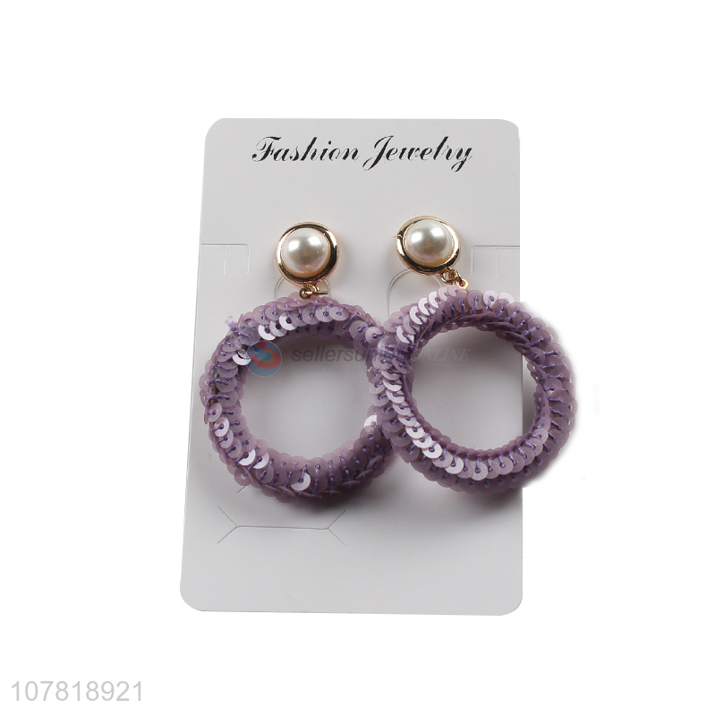 New product handmade sequin hoop earrings pearl stud earrings