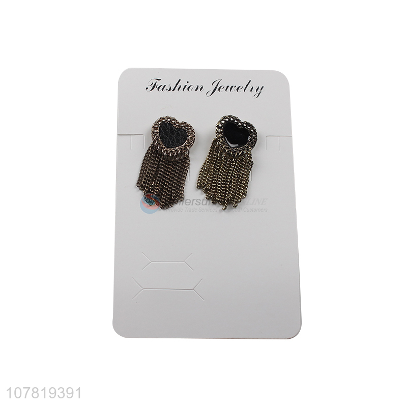 Wholesale French style pu leather inside heart earring with chain tassels