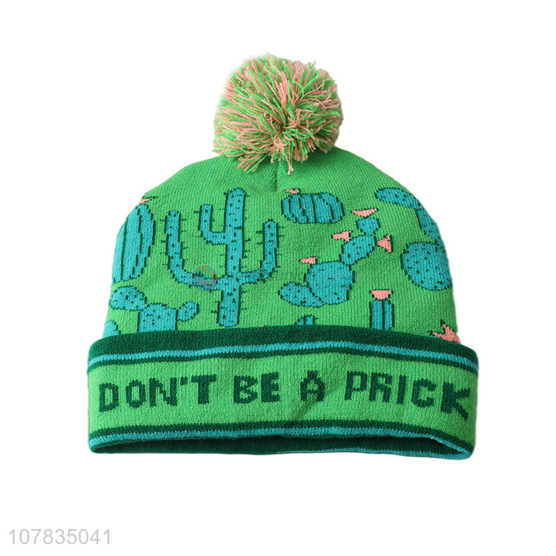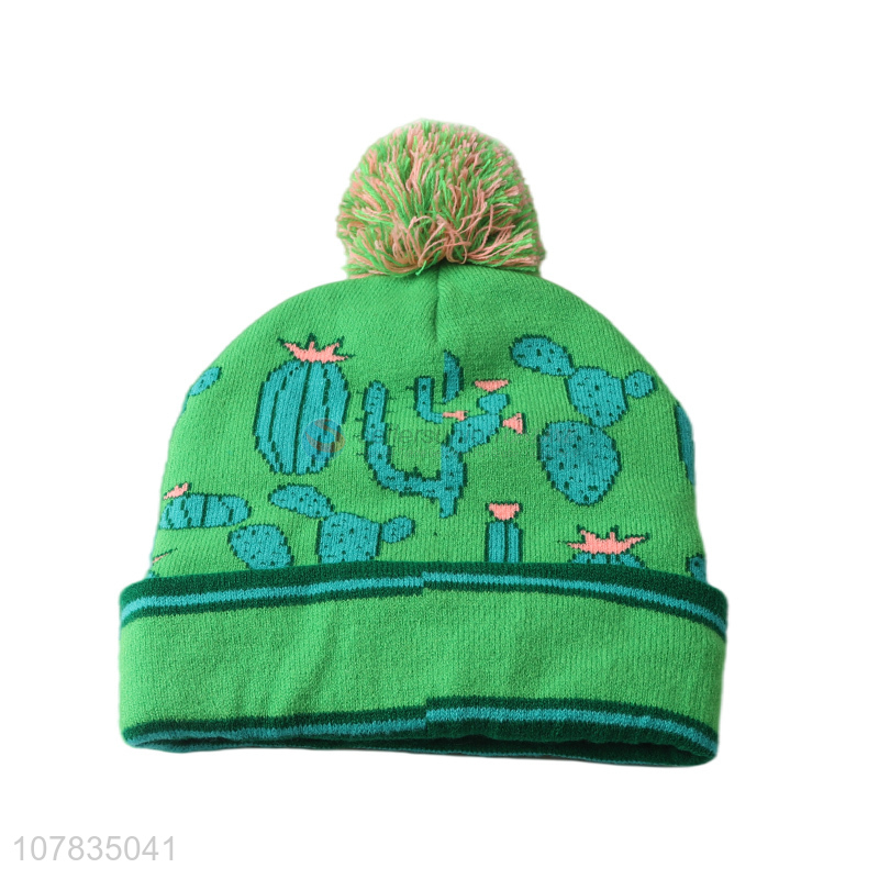 New arrival children hats cactus pattern jacquard knitted beanie