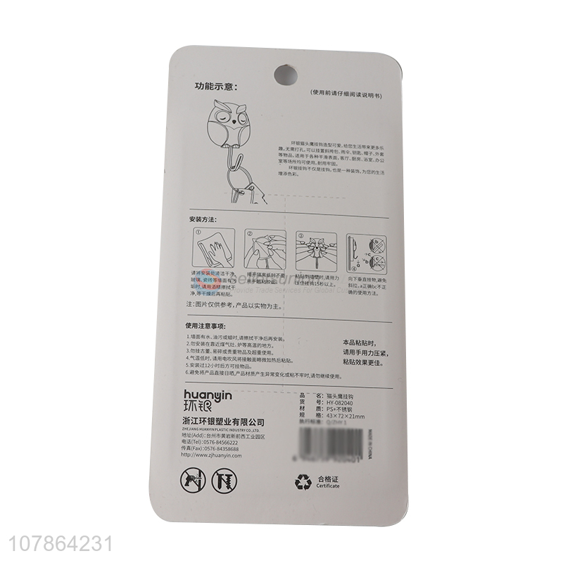China manufacturer owl shape wall mounted hook plastic hooks