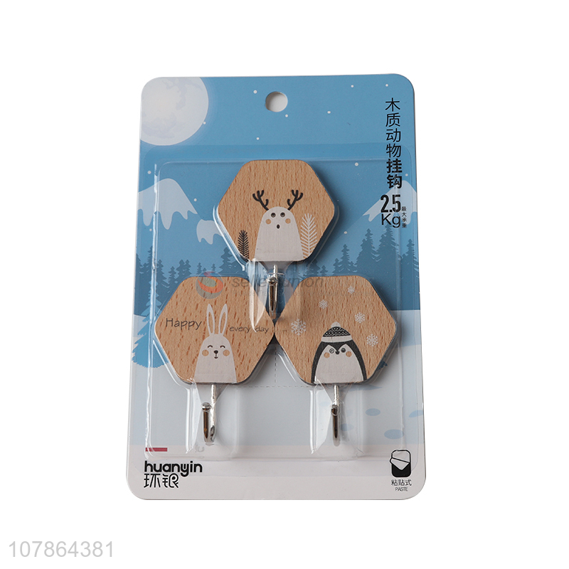 Hot selling creative cartoon animal printed wooden sticky hooks