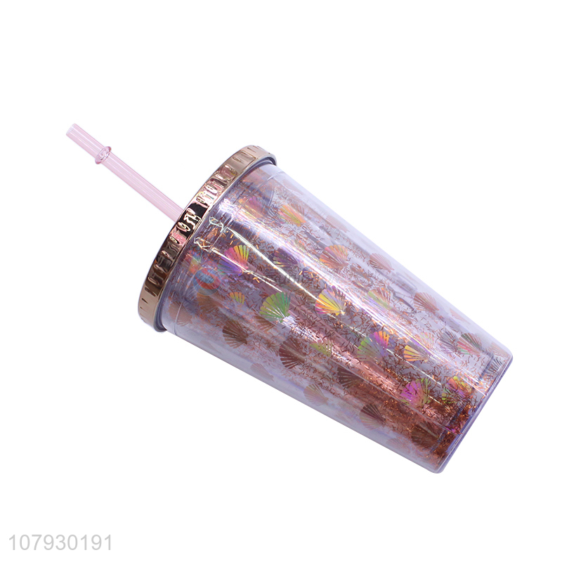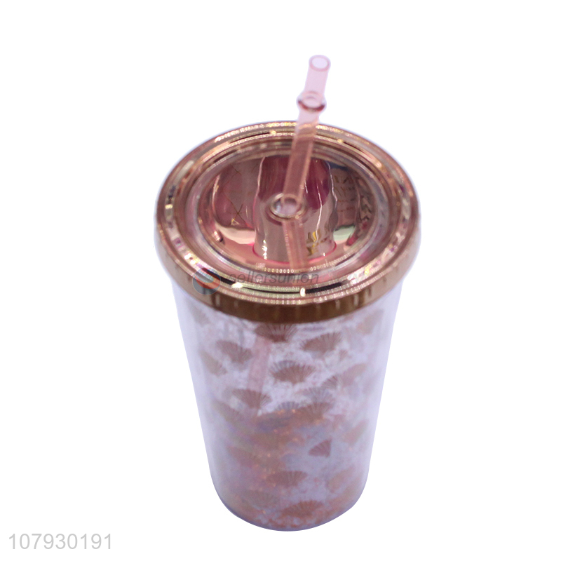 Wholesale summer double walls plastic juice mug water cup with straw