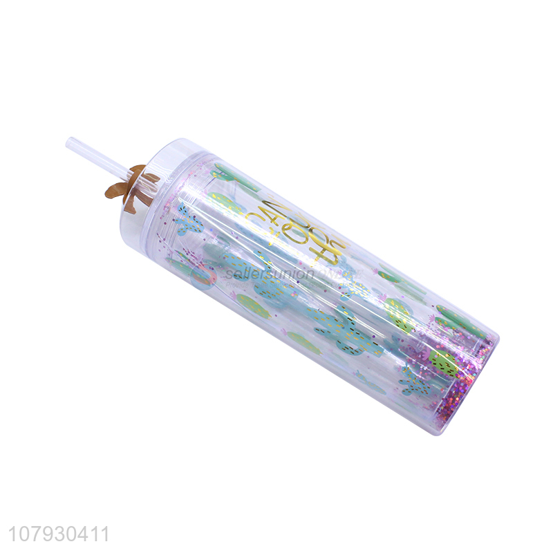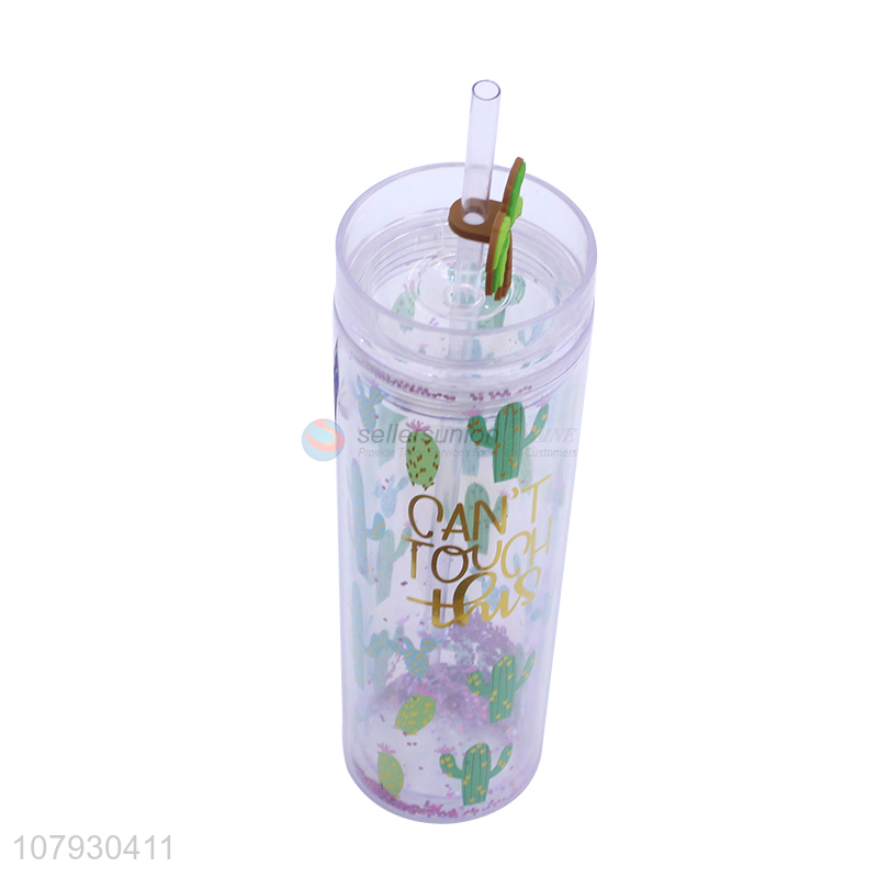 Online wholesale fresh plastic mugs reusable cups milk cup with straw