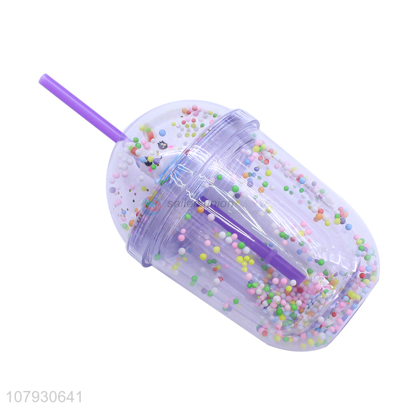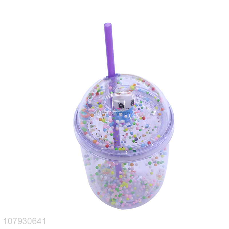Online wholesale colorful beads double-walled water tumbler with straw