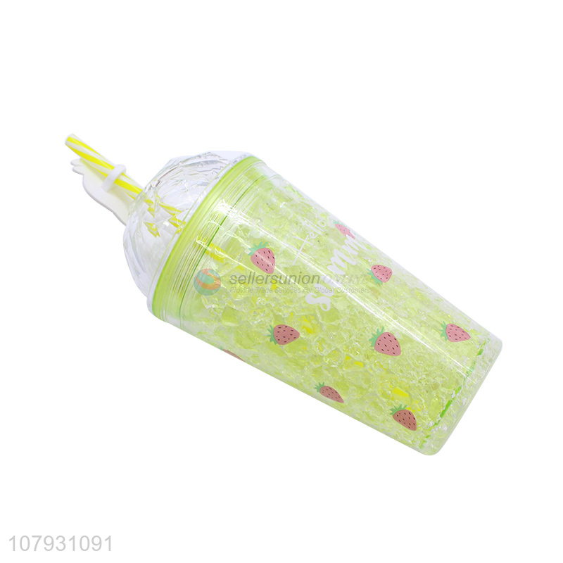 Factory price summer drinking cup plastic ice gel cooling mug with straw