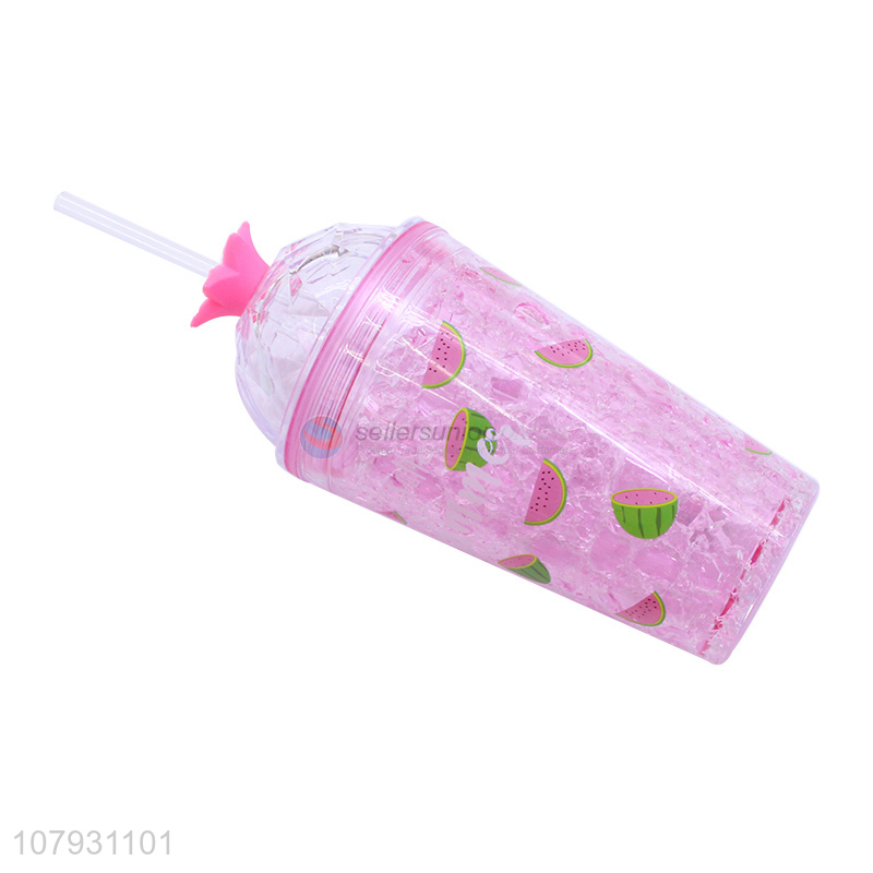Customized reusable ice gel cooling tumbler cold drinks cup with lid & straw