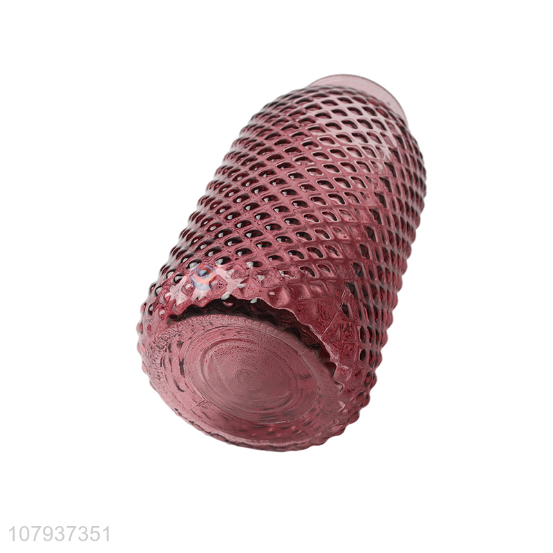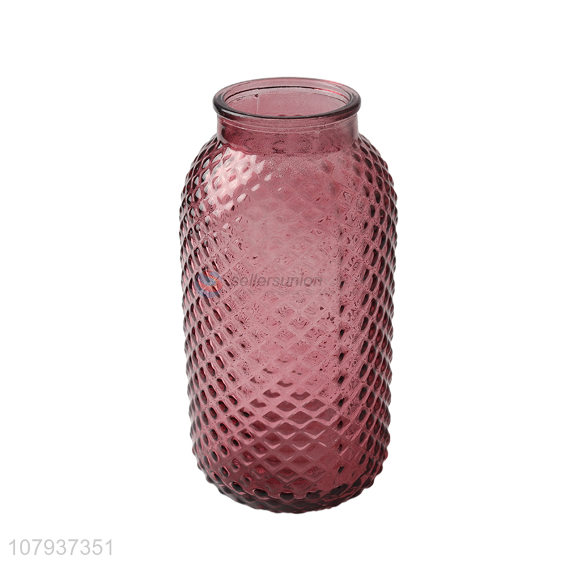 Factory price embossed colored glass flower plant vase ornaments