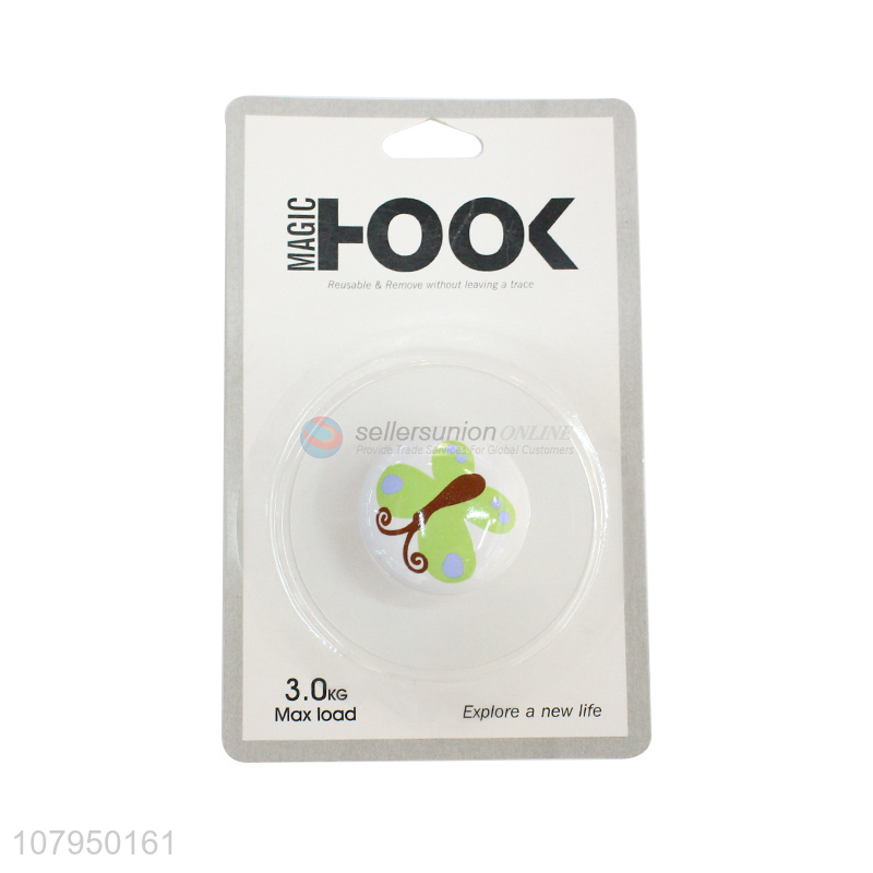 Popular products green butterfly ceramic sticky hook home decoration hooks
