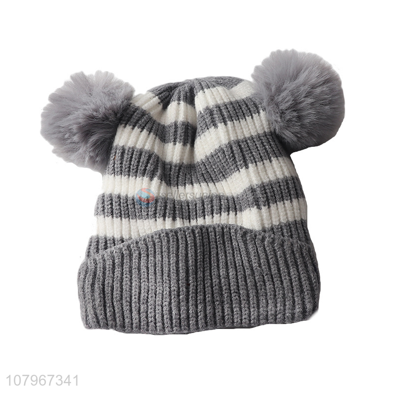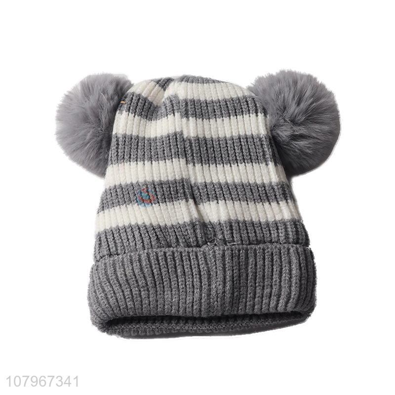 Top product children winter thermal knitted beanie hat with pom pom