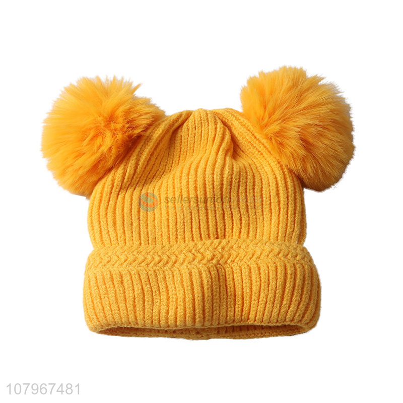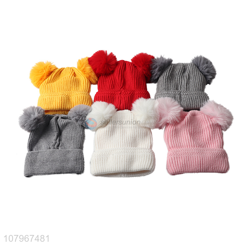 Hot products lovely kids winter warm knitted beanie hat with pom pom