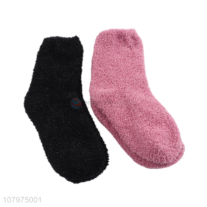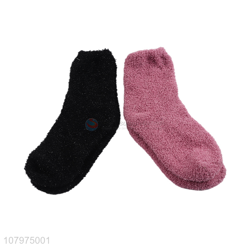 China market solid color ladies warm fluffy women socks wholesale