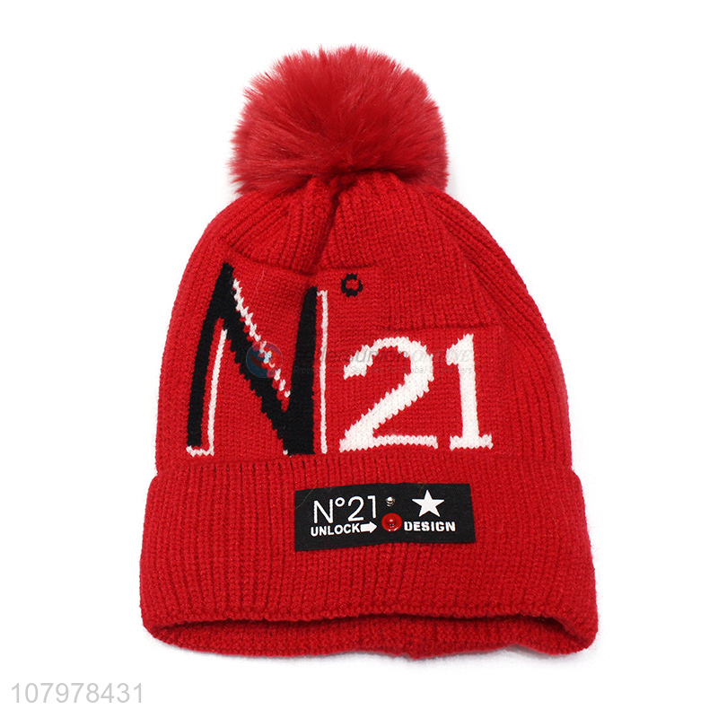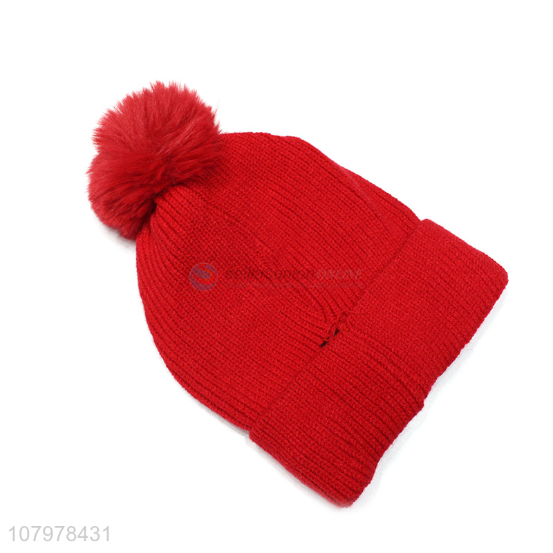 Good quality children winter hat kids thickened pom pom beanie skull cap
