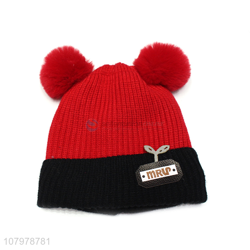 Online wholesale children winter thick beanies soft knitted ski skull cap