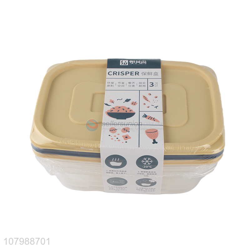 Low price 3 pieces rectangular plastic food crisper eco-friendly food fresh box